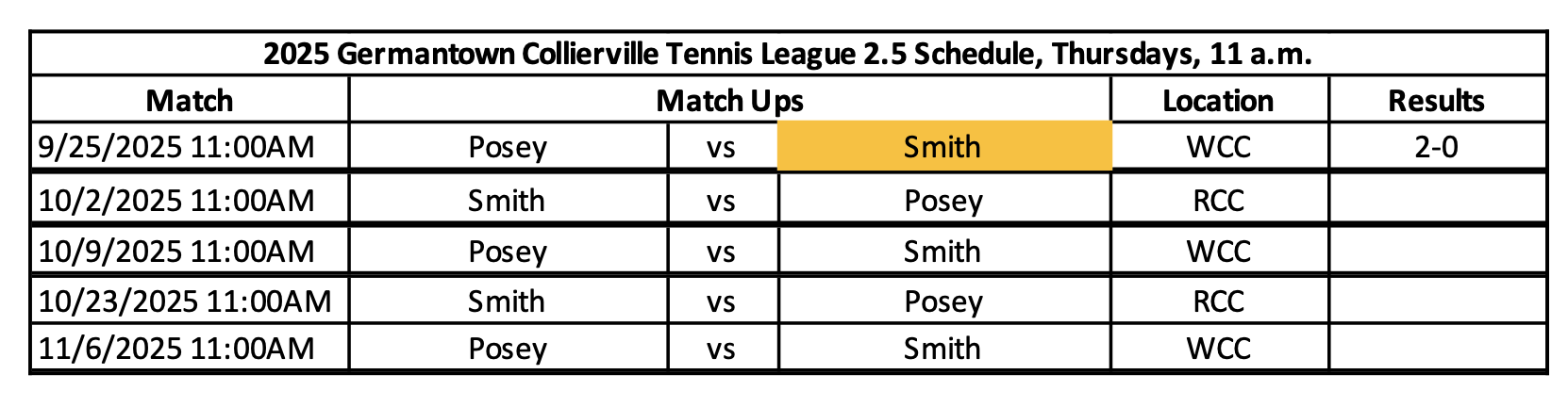 The Germantown Collierville Tennis League is a tennis league comprised of teams from the following facilities:
